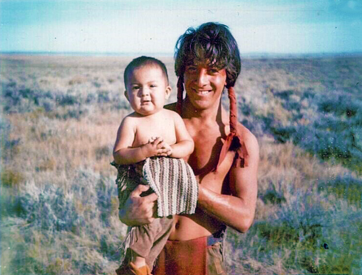 Jace Big Day (little boy on travois in movie), Dustin Hoffman (courtesy of Heywood & Mary Lou Big Day)